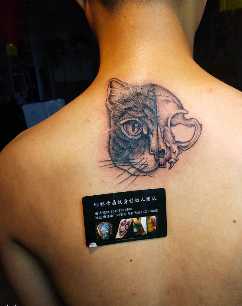当前位置: 首页 >河北省邯郸市纹身店-帝易纹身总师父店纹身图案>双面猫纹身图片_背部欧美清新动物成品纹身图案