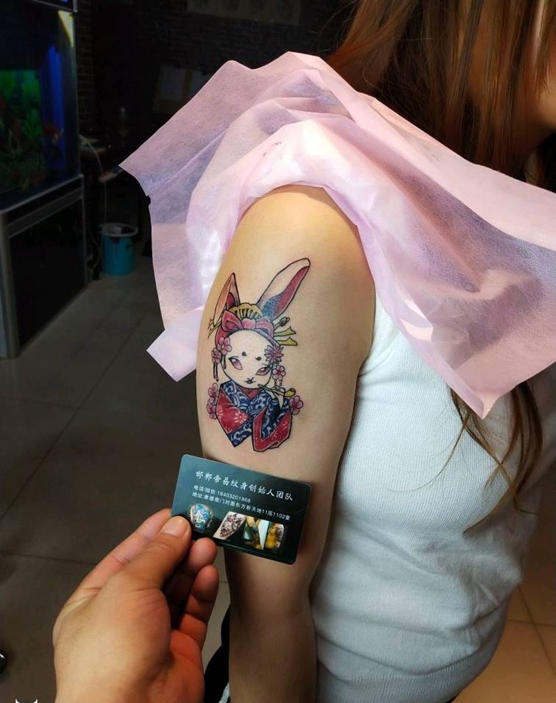 当前位置: 首页 >河北省邯郸市纹身店-帝易纹身总师父店纹身图案>艺妓兔纹身图片_手臂新传统纹身图案