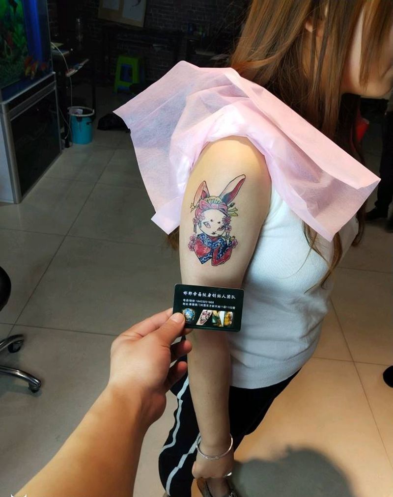 当前位置: 首页 >河北省邯郸市纹身店-帝易纹身总师父店纹身图案>艺妓兔纹身图片_手臂新传统纹身图案