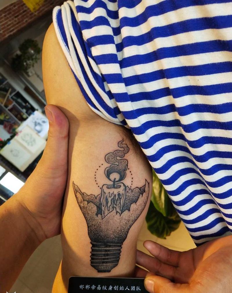 当前位置: 首页 >河北省邯郸市纹身店-帝易纹身总师父店纹身图案>灯纹身图片_手臂欧美写实New School纹身图案