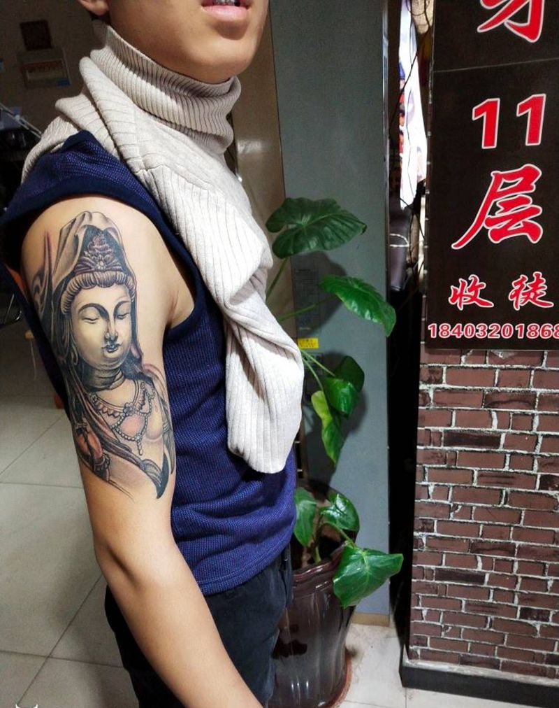 当前位置: 首页 >河北省邯郸市纹身店-帝易纹身总师父店纹身图案>菩萨纹身图片_肩部新传统纹身图案