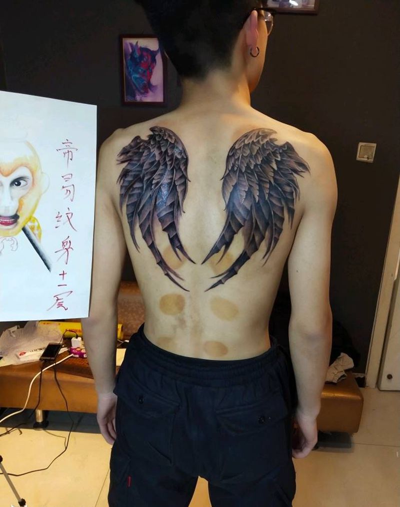 当前位置: 首页 >河北省邯郸市纹身店-帝易纹身总师父店纹身图案>翅膀纹身图片_肩部背部新传统欧美写实翅膀纹身图案