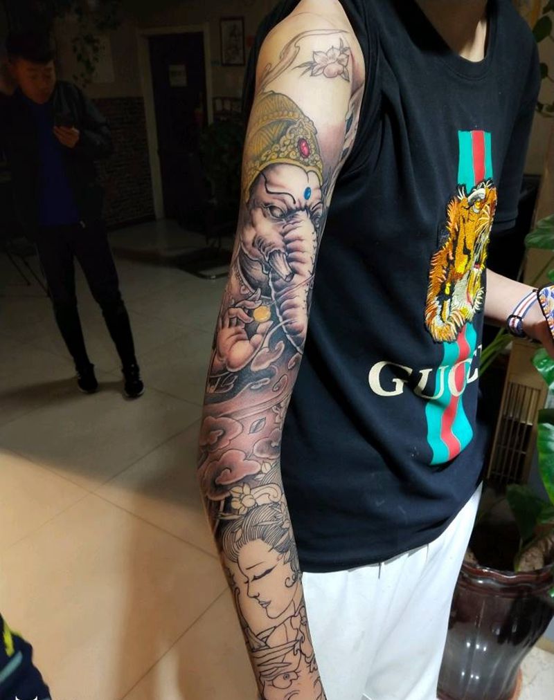 当前位置: 首页 >河北省邯郸市纹身店-帝易纹身总师父店纹身图案>象神纹身图片_手臂新传统花臂纹身图案