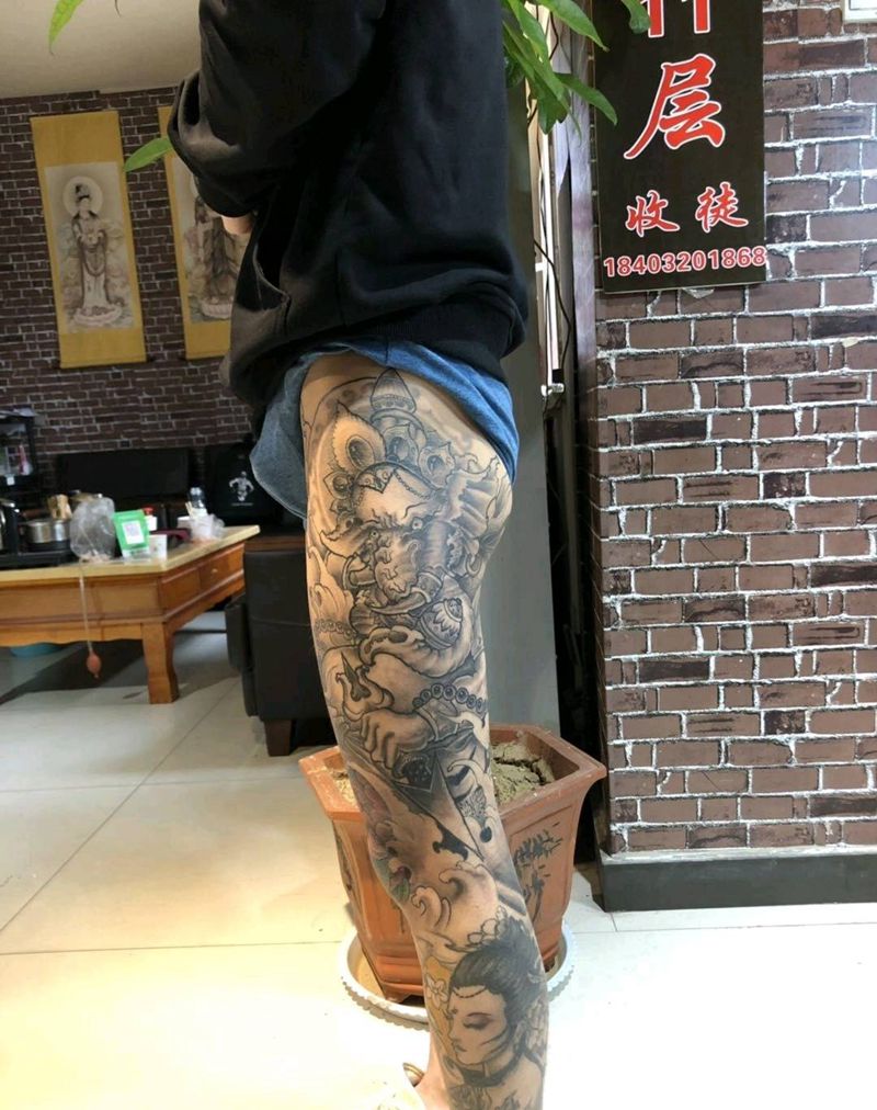 徒弟特价花腿恢复好纹身图片_腿部新传统纹身图案