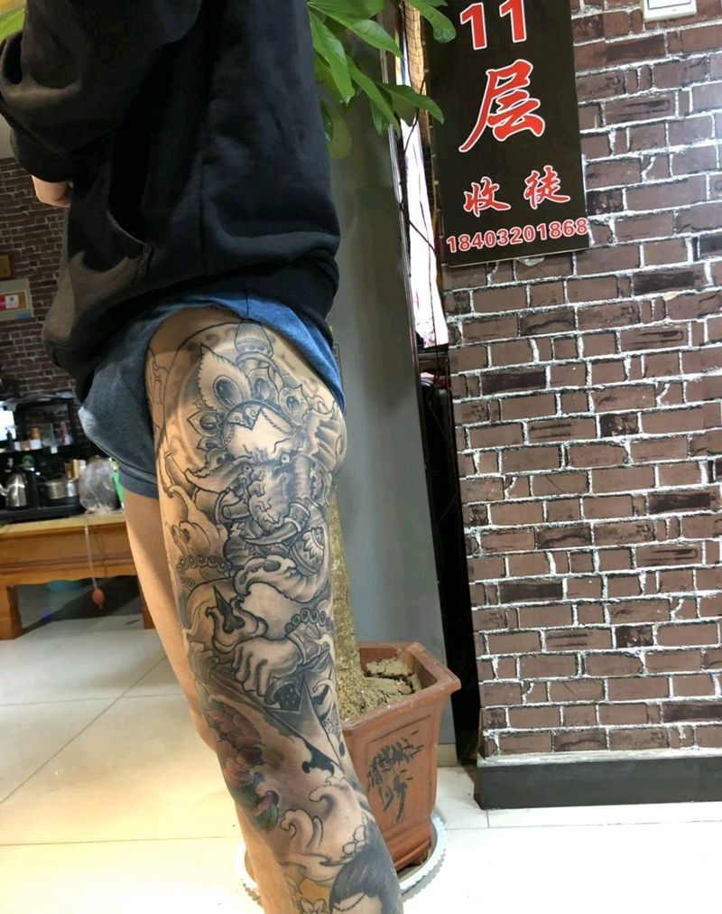 徒弟特价花腿恢复好纹身图片_腿部新传统纹身图案