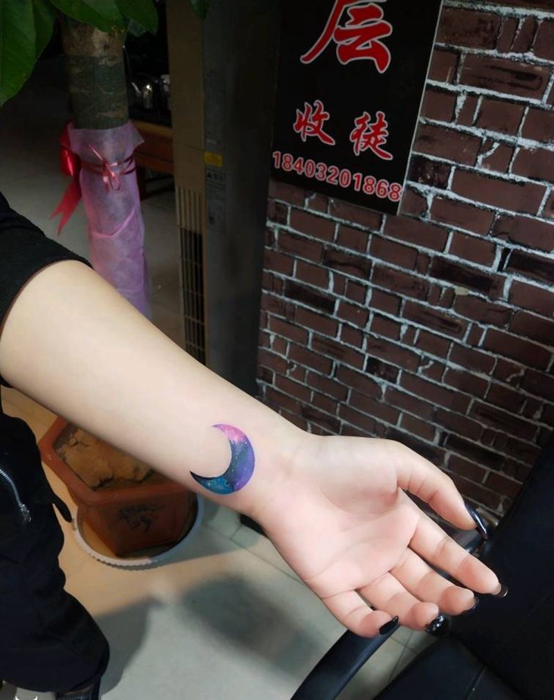 当前位置: 首页 >河北省邯郸市纹身店-帝易纹身总师父店纹身图案>水彩月亮纹身图片_手臂水彩纹身图案