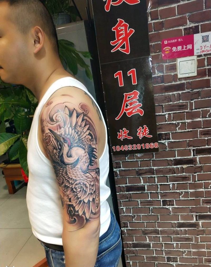 当前位置: 首页 >河北省邯郸市纹身店-帝易纹身总师父店纹身图案>鹤纹身图片_手臂肩部新传统纹身图案