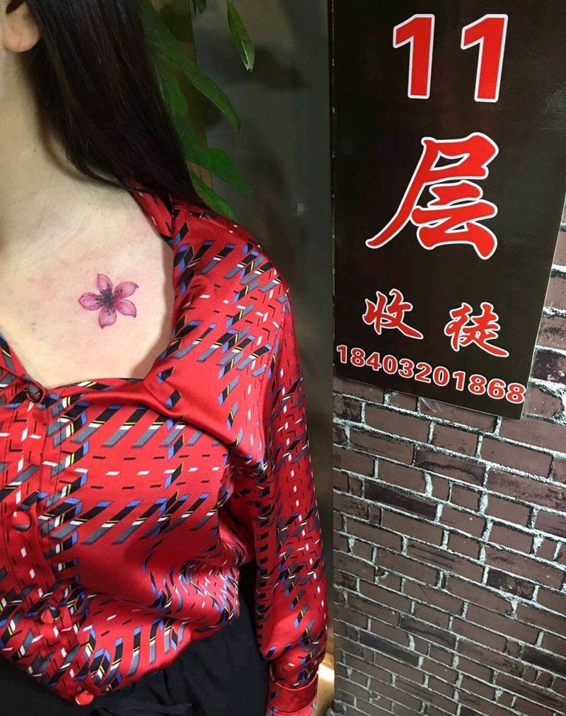 驻店师傅手绘小花花纹身图片_胸部水彩纹身图案