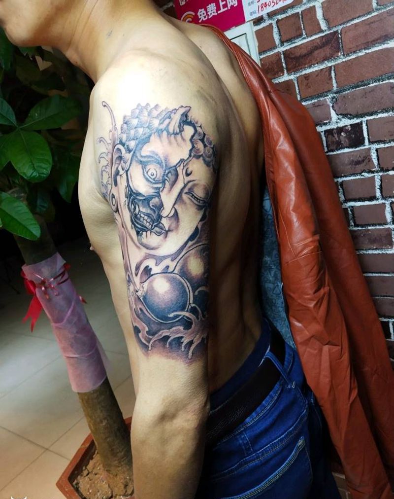 佛魔纹身图片_手臂新传统佛头纹身图案