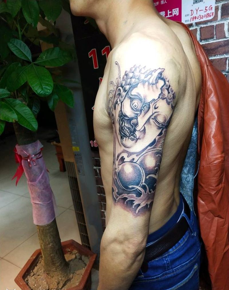 佛魔纹身图片_手臂新传统佛头纹身图案