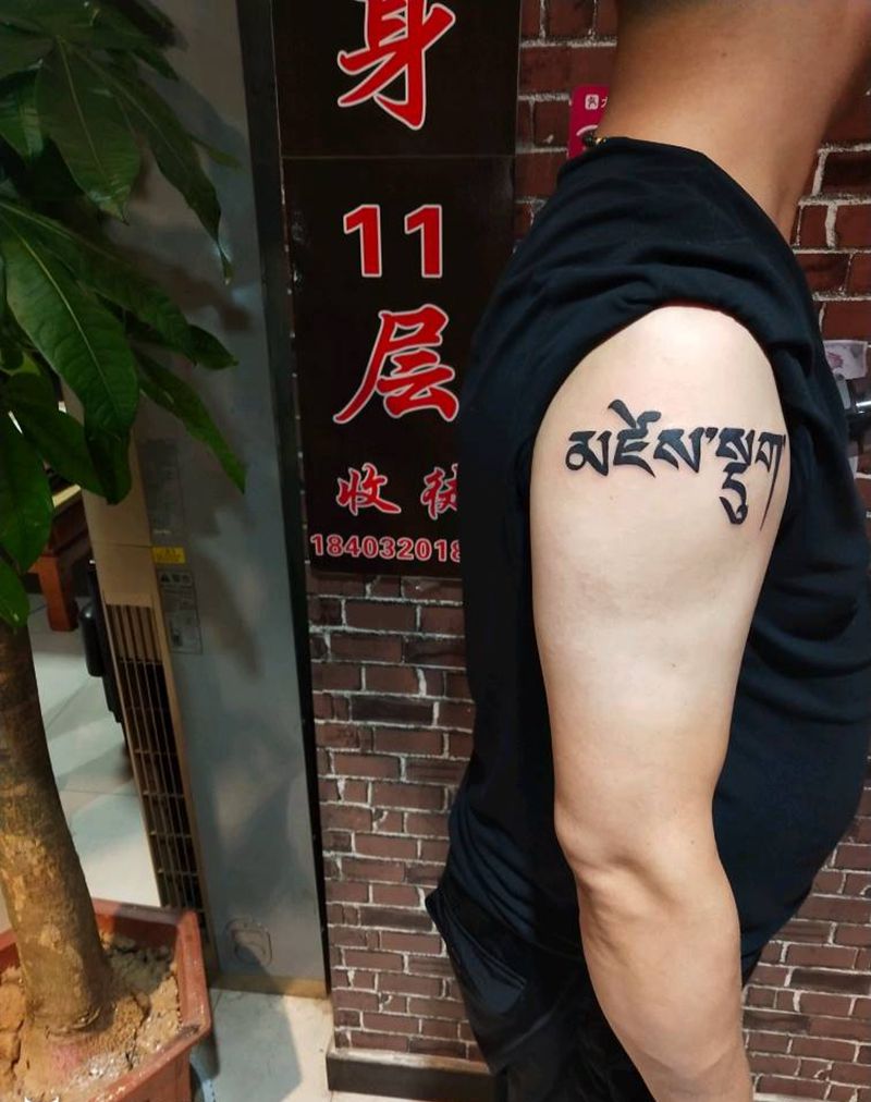 当前位置: 首页 >河北省邯郸市纹身店-帝易纹身总师父店纹身图案>蒙文纹身图片_肩部花体字纹身图案