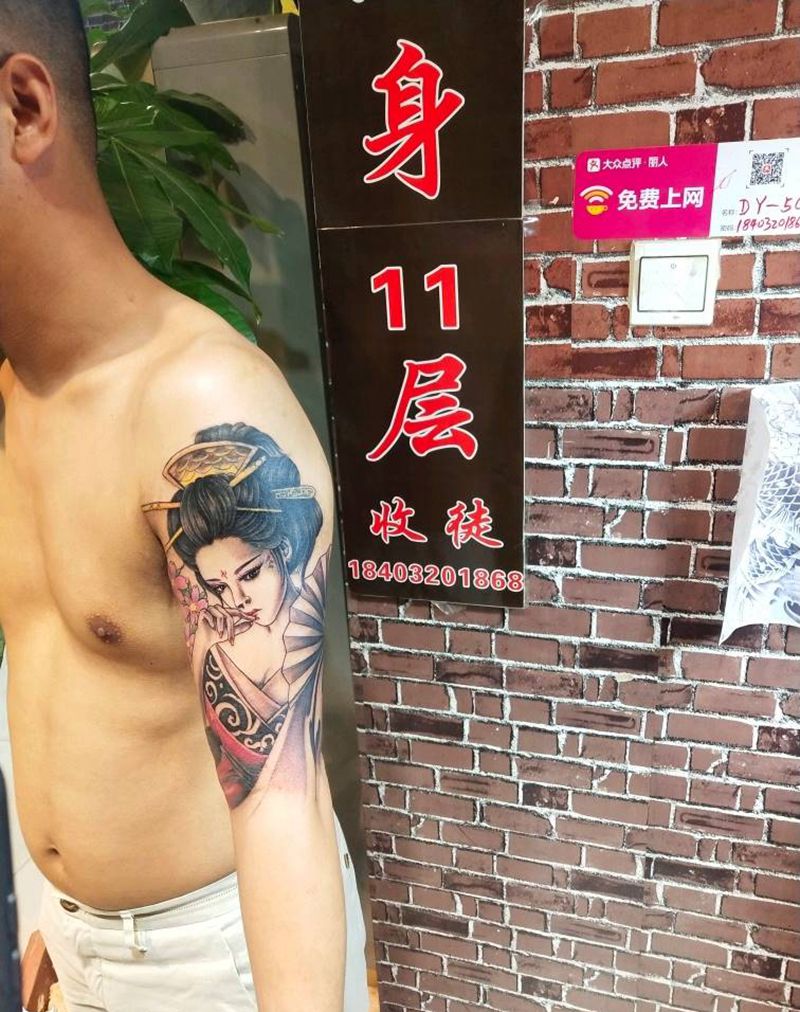 当前位置: 首页 >河北省邯郸市纹身店-帝易纹身总师父店纹身图案>艺妓纹身图片_手臂新传统纹身图案