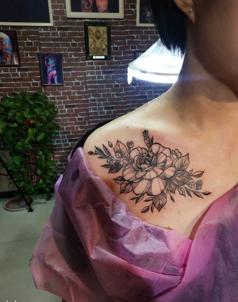 • 女性大花胸纹身_43张霸气漂亮的女性大花胸纹身图案作品
