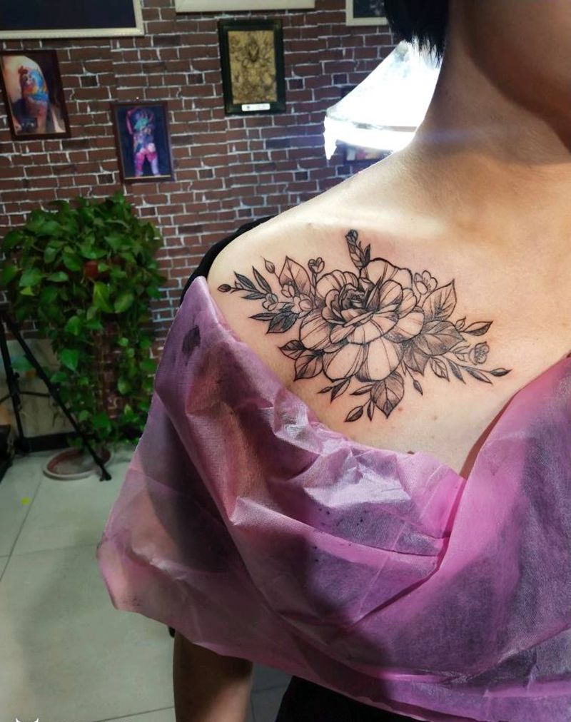 • 女性大花胸纹身_43张霸气漂亮的女性大花胸纹身图案作品
