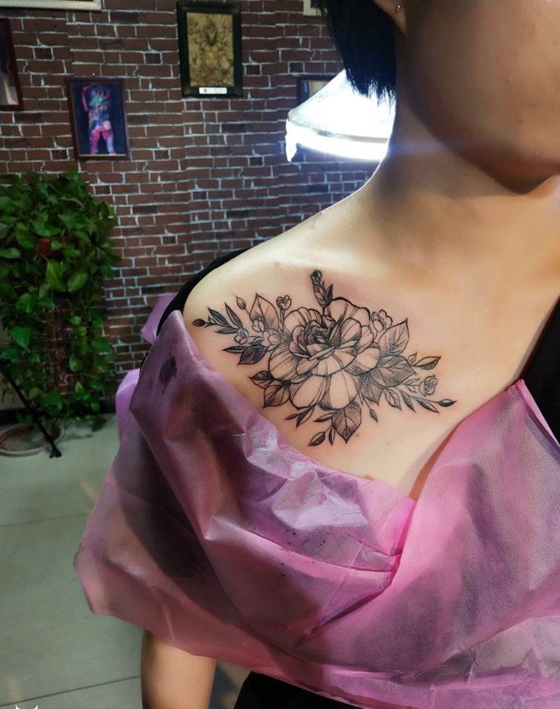 • 女性大花胸纹身_43张霸气漂亮的女性大花胸纹身图案作品