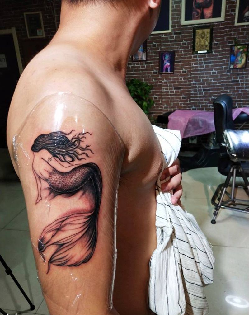 当前位置: 首页 >河北省邯郸市纹身店-帝易纹身总师父店纹身图案>美人鱼纹身图片_肩部纹身图案