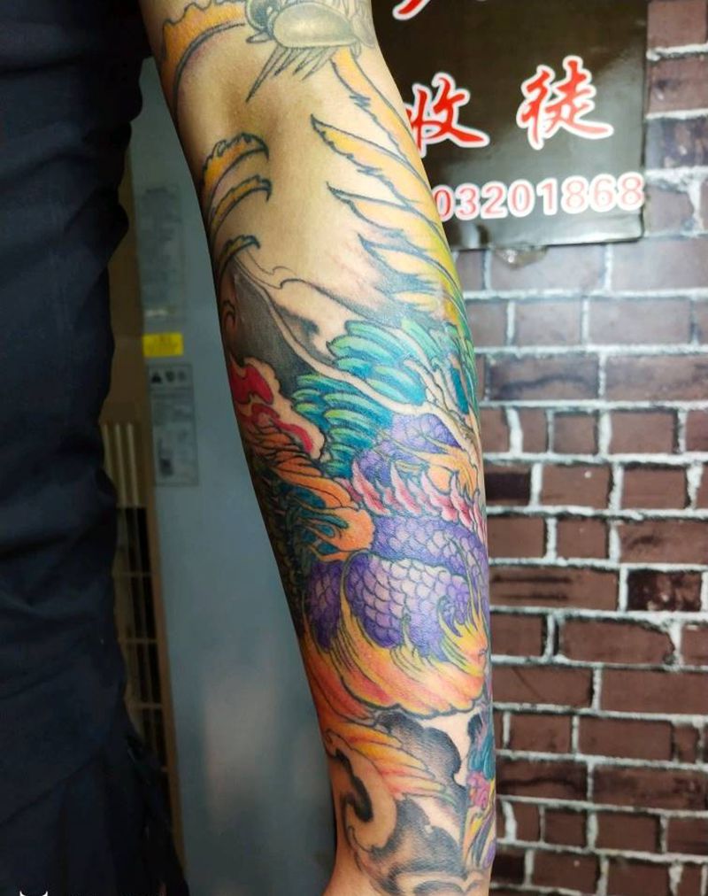 当前位置: 首页 >河北省邯郸市纹身店-帝易纹身总师父店纹身图案>凤凰涅磐纹身图片_手臂新传统纹身图案