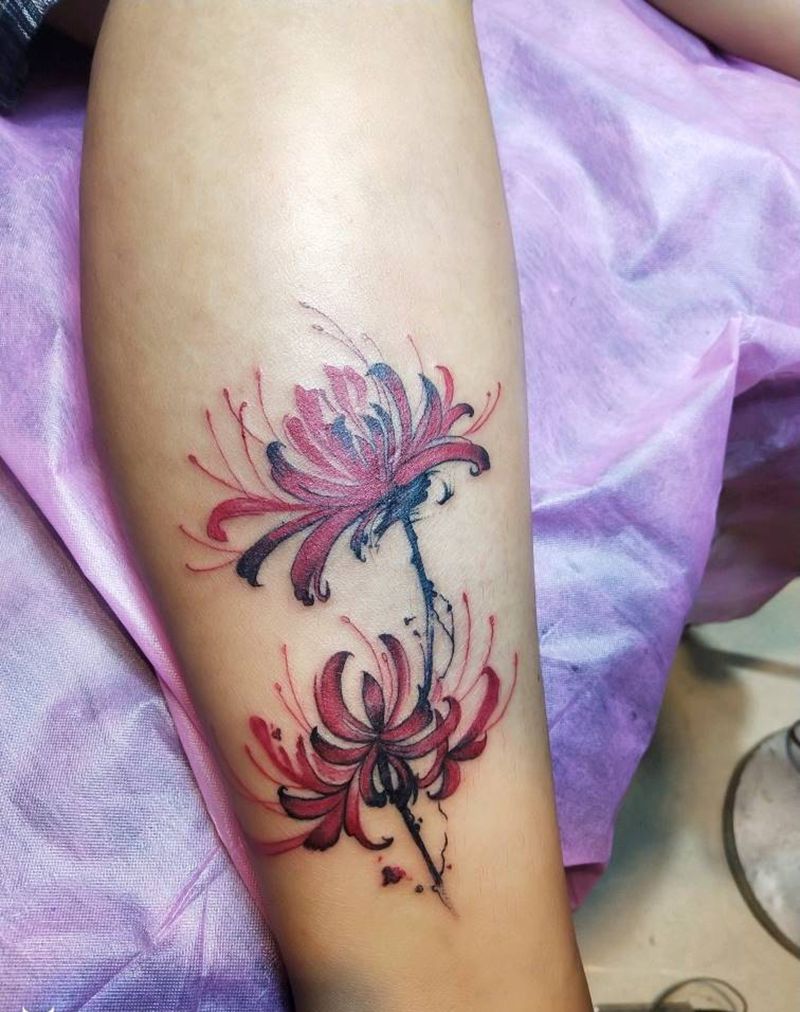 当前位置: 首页 >河北省邯郸市纹身店-帝易纹身总师父店纹身图案>彼岸花纹身图片_腿部纹身图案