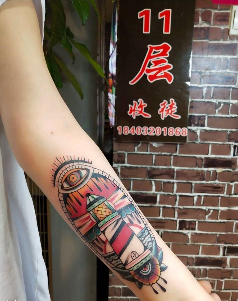 当前位置: 首页 >河北省邯郸市纹身店-帝易纹身总师父店纹身图案>灯塔纹身图片_手臂New School彩色纹身图案