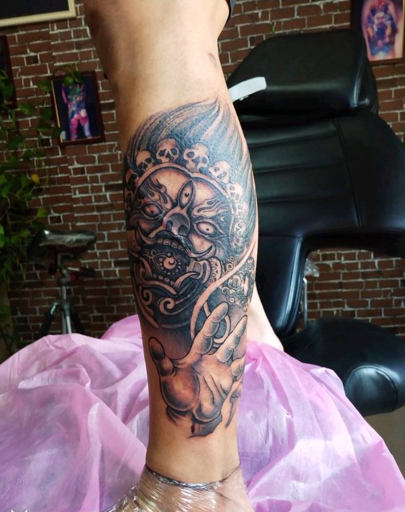 当前位置: 首页 >河北省邯郸市纹身店-帝易纹身总师父店纹身图案>黑天纹身图片_腿部新传统纹身图案