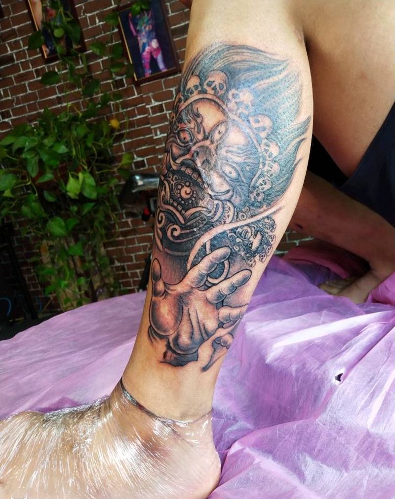 当前位置: 首页 >河北省邯郸市纹身店-帝易纹身总师父店纹身图案>黑天纹身图片_腿部新传统纹身图案