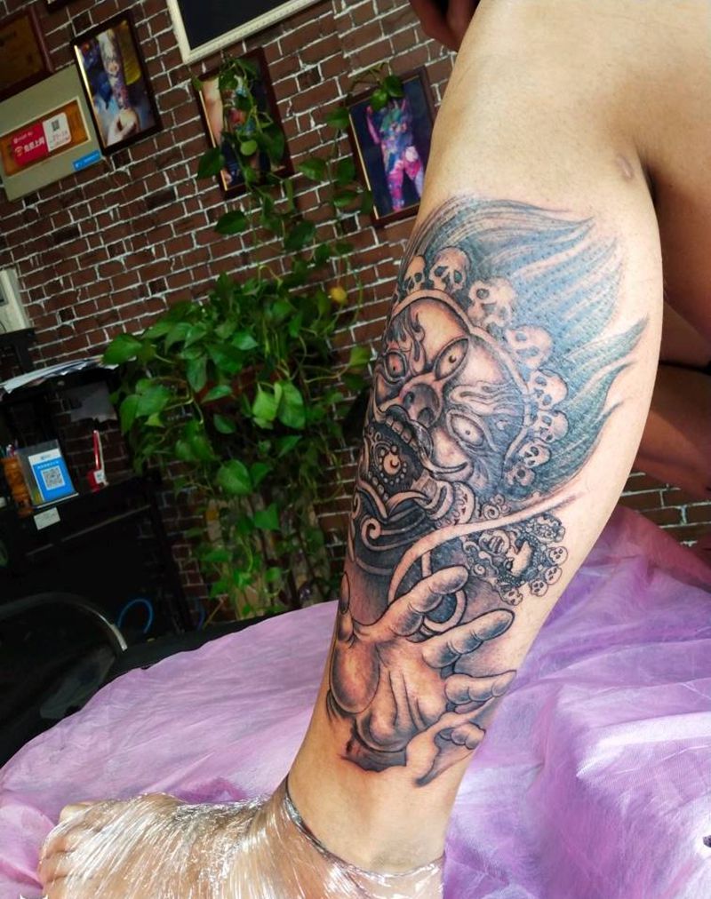 当前位置: 首页 >河北省邯郸市纹身店-帝易纹身总师父店纹身图案>黑天纹身图片_腿部新传统纹身图案