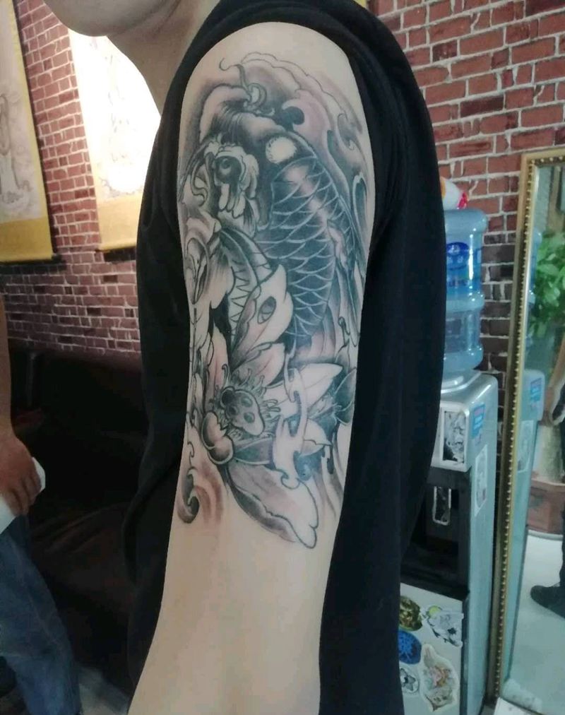 当前位置: 首页 >河北省邯郸市纹身店-帝易纹身总师父店纹身图案>鲤鱼纹身图片_手臂新传统纹身图案