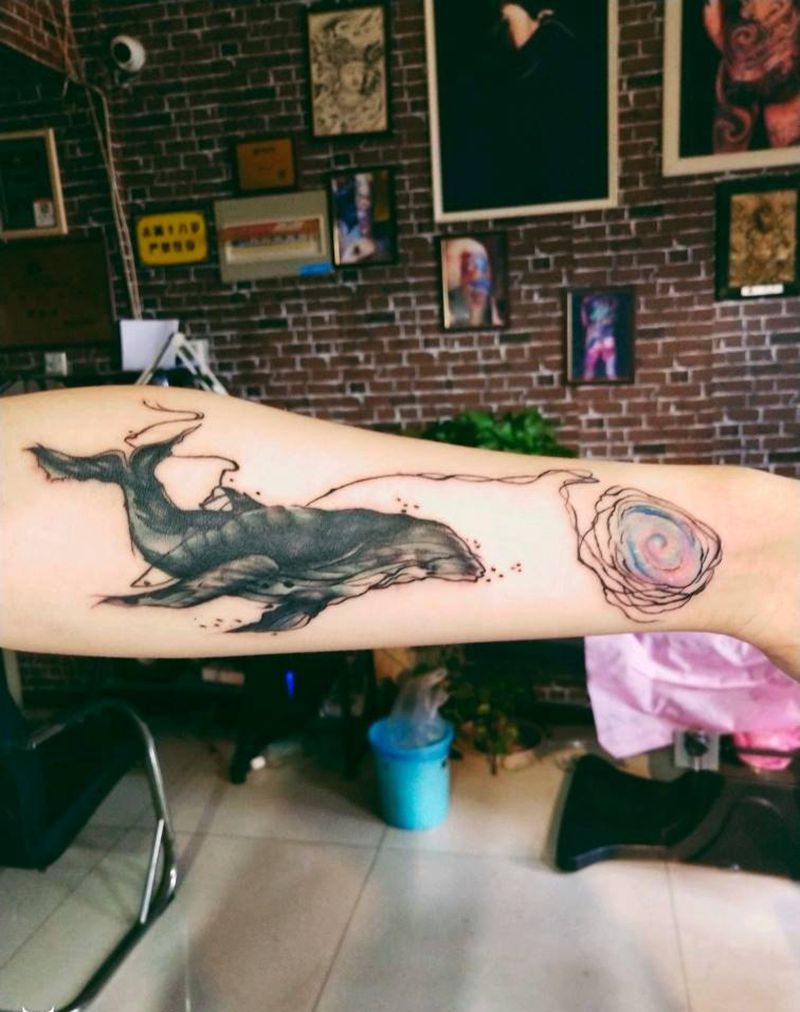 当前位置: 首页 >河北省邯郸市纹身店-帝易纹身总师父店纹身图案>梵高都不认识的鲸鱼纹身图片_手臂点刺水彩纹身图案