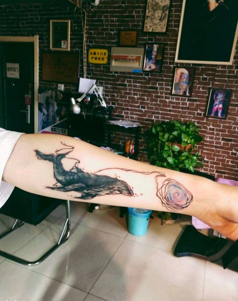 当前位置: 首页 >河北省邯郸市纹身店-帝易纹身总师父店纹身图案>梵高都不认识的鲸鱼纹身图片_手臂点刺水彩纹身图案