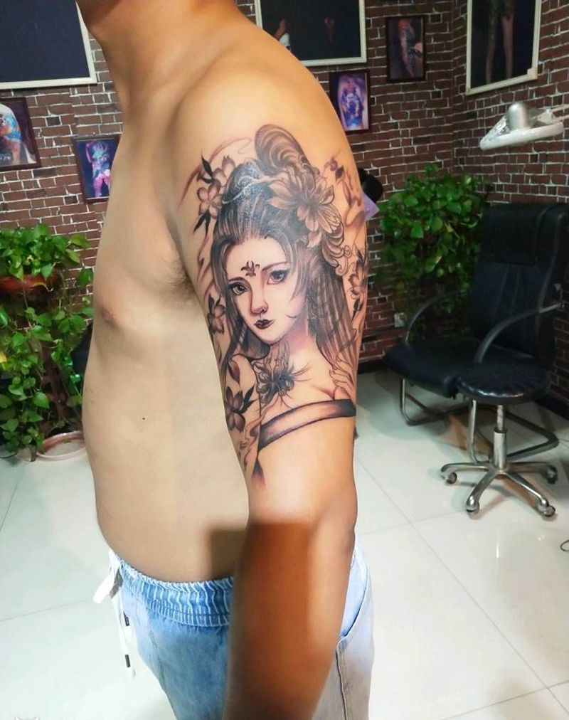 美女纹身图片_肩部新传统纹身图案