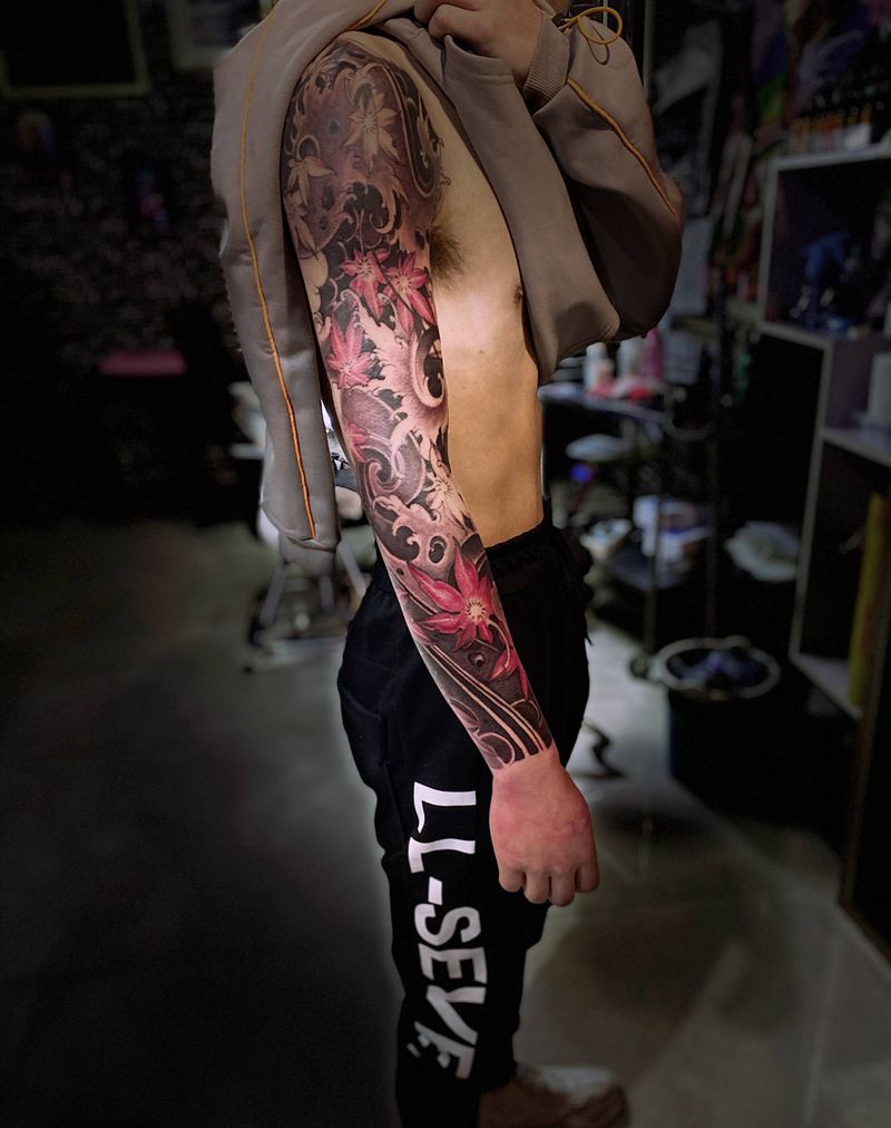 当前位置: 首页 >河北省邯郸市纹身店-帝易纹身总师父店纹身图案>水浪枫叶花臂纹身图片_手臂新传统纹身图案