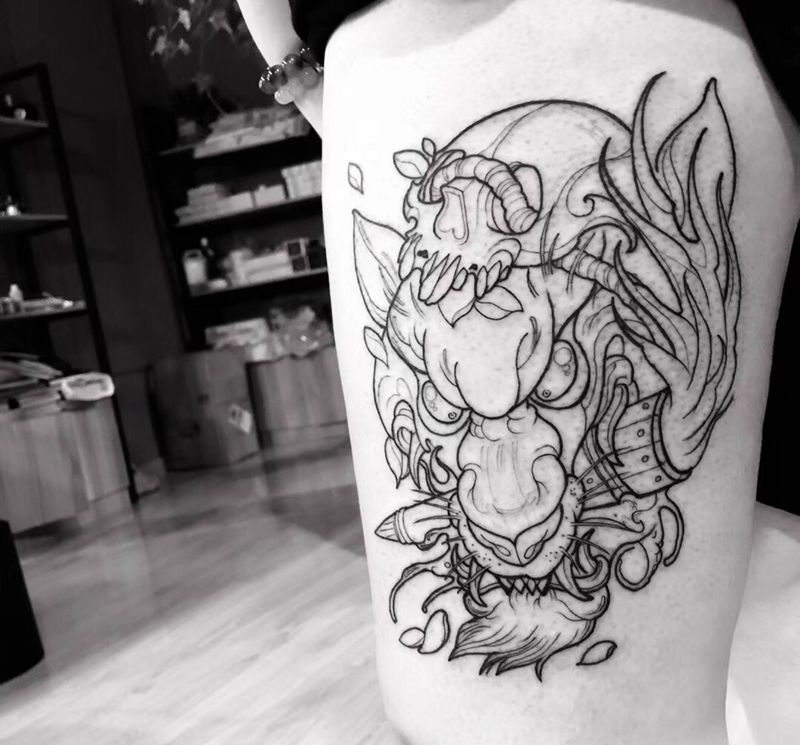 当前位置: 首页 >河北省邯郸市纹身店-ME tattoo studio纹身图案>狼头纹身图片_腿部New School纹身图案