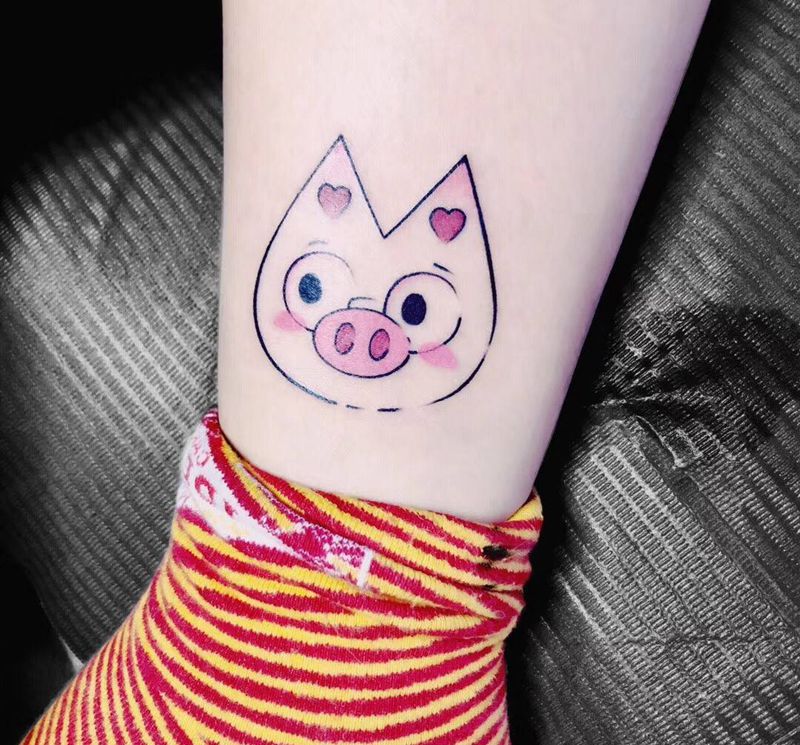 • T包小腿吹火男+阿多福纹身图片_腿部老传统新传统吹火男阿