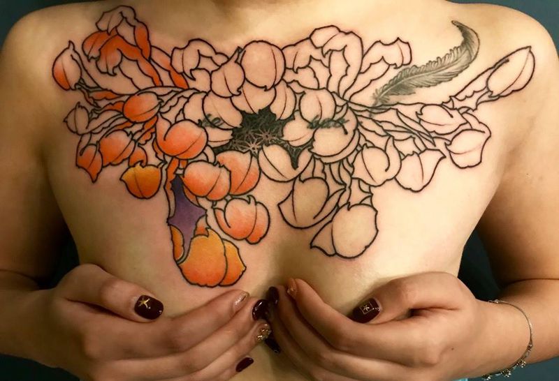 • 女性大花胸纹身_43张霸气漂亮的女性大花胸纹身图案作品