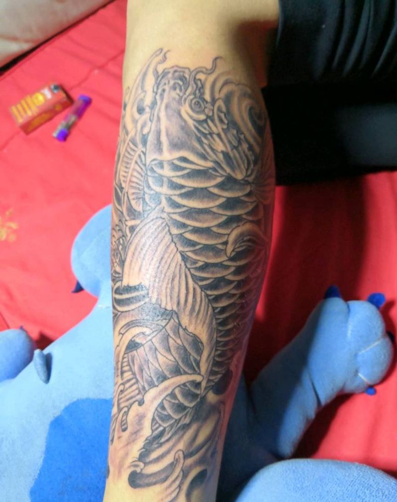 当前位置: 首页 >河北省邢台市纹身店-木偶刺青工作室纹身图案>小腿鲤鱼纹身图片