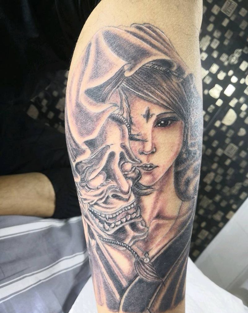当前位置: 首页 >河北省邢台市纹身店-木偶刺青工作室纹身图案>艺伎上色纹身图片