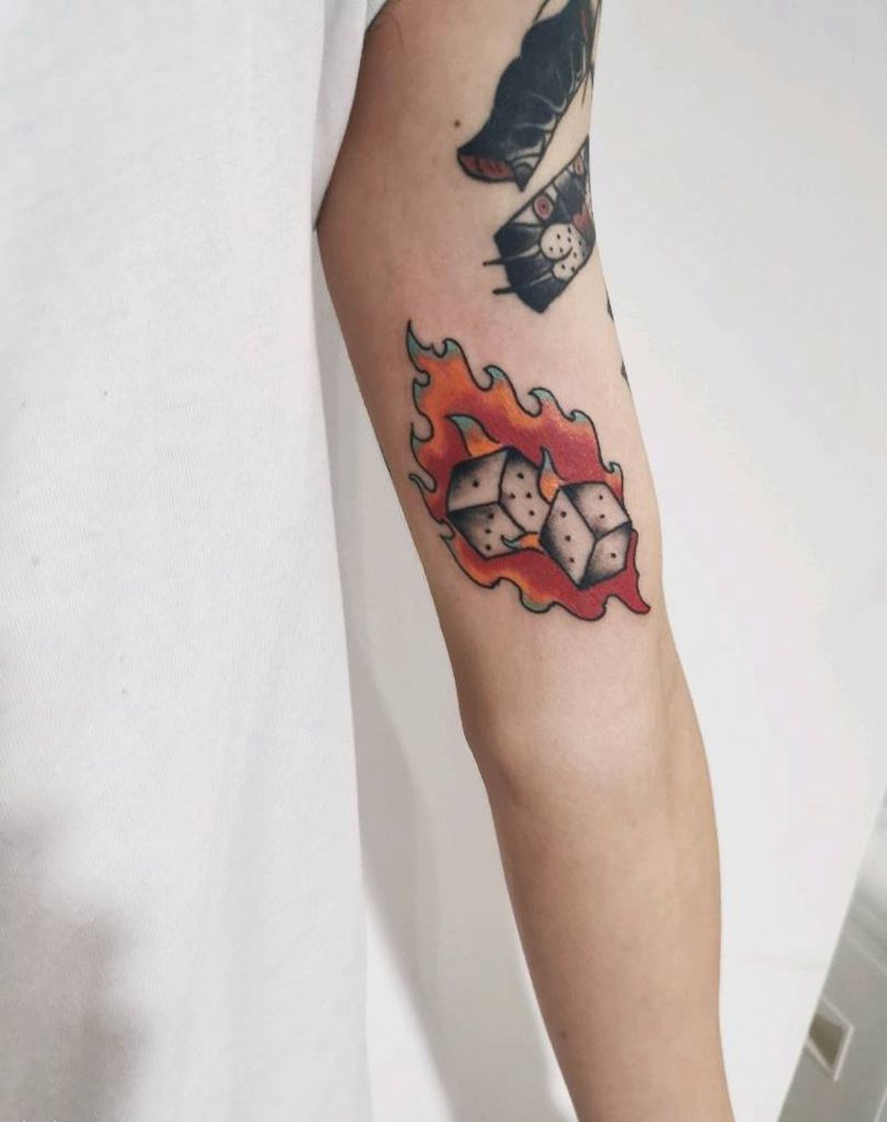当前位置: 首页 >河北省邢台市纹身店-五帝刺青纹身图案>school骰子纹身图片_手臂Old School纹身图案