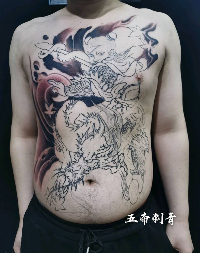 哪吒纹身图片_胸部腹部新传统纹身图案