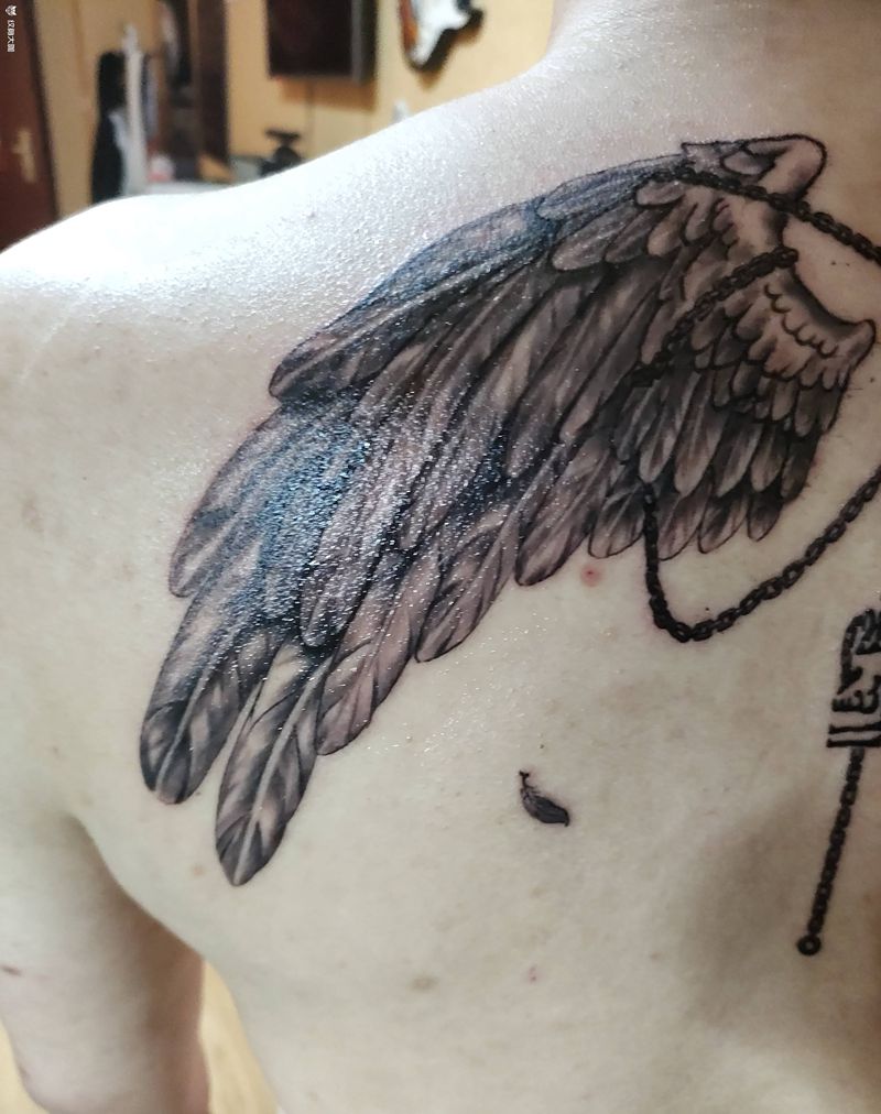 当前位置: 首页 >河北省保定市纹身店-楊·刺青工作室纹身图案>一念纹身图片_背部新传统翅膀纹身图案