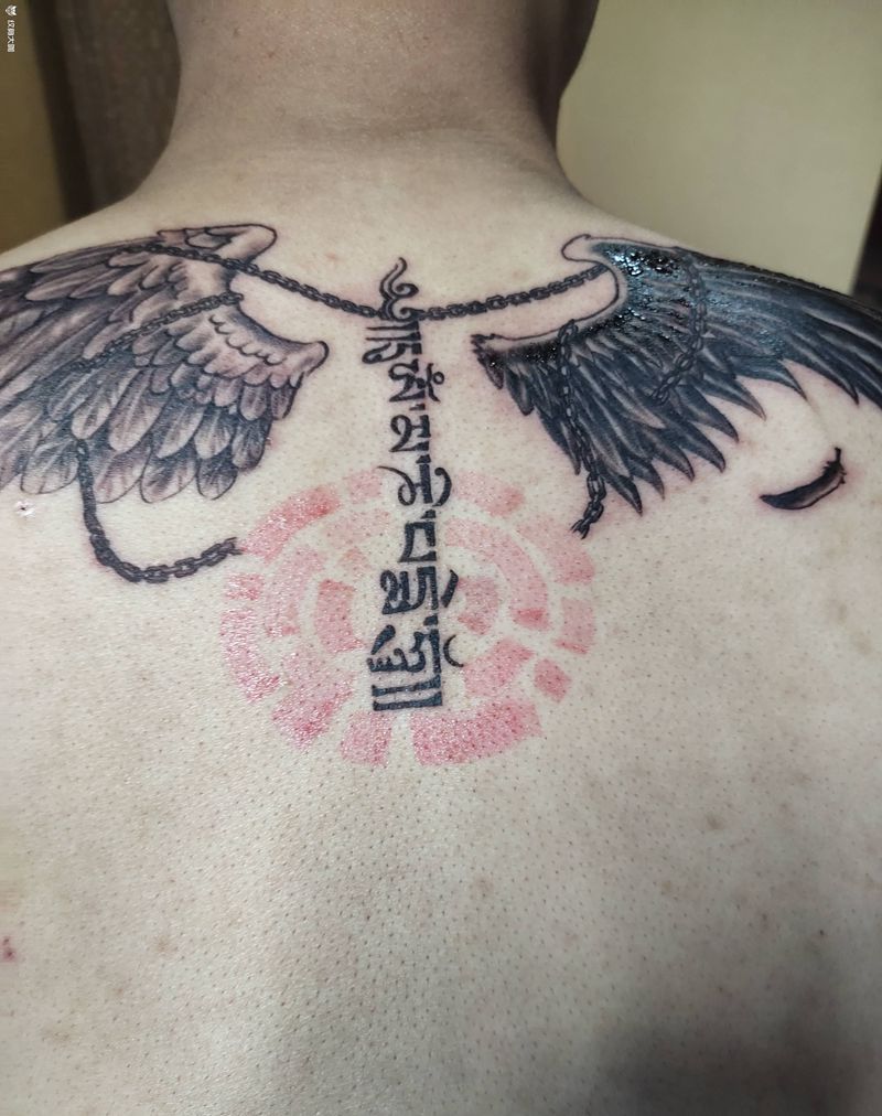 当前位置: 首页 >河北省保定市纹身店-楊·刺青工作室纹身图案>一念纹身图片_背部新传统翅膀纹身图案