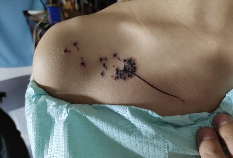 当前位置: 首页 >河北省保定市纹身店-楊·刺青工作室纹身图案>蒲公英纹身图片_肩部胸部纹身图案