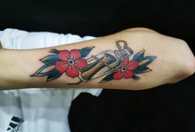 当前位置: 首页 >河北省邢台市纹身店-五帝刺青纹身图案>school漂流瓶纹身图片_手臂Old School纹身图案