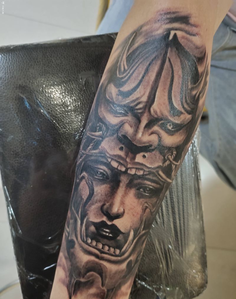 当前位置: 首页 >河北省保定市纹身店-楊·刺青工作室纹身图案>般若艺妓纹身图片_手臂欧美写实纹身图案