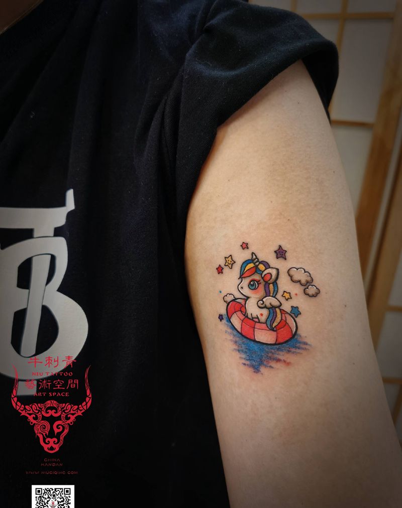 当前位置: 首页 >河北省邯郸市纹身店-邯郸牛刺青纹身图案>独角兽纹身图片_手臂水彩纹身图案
