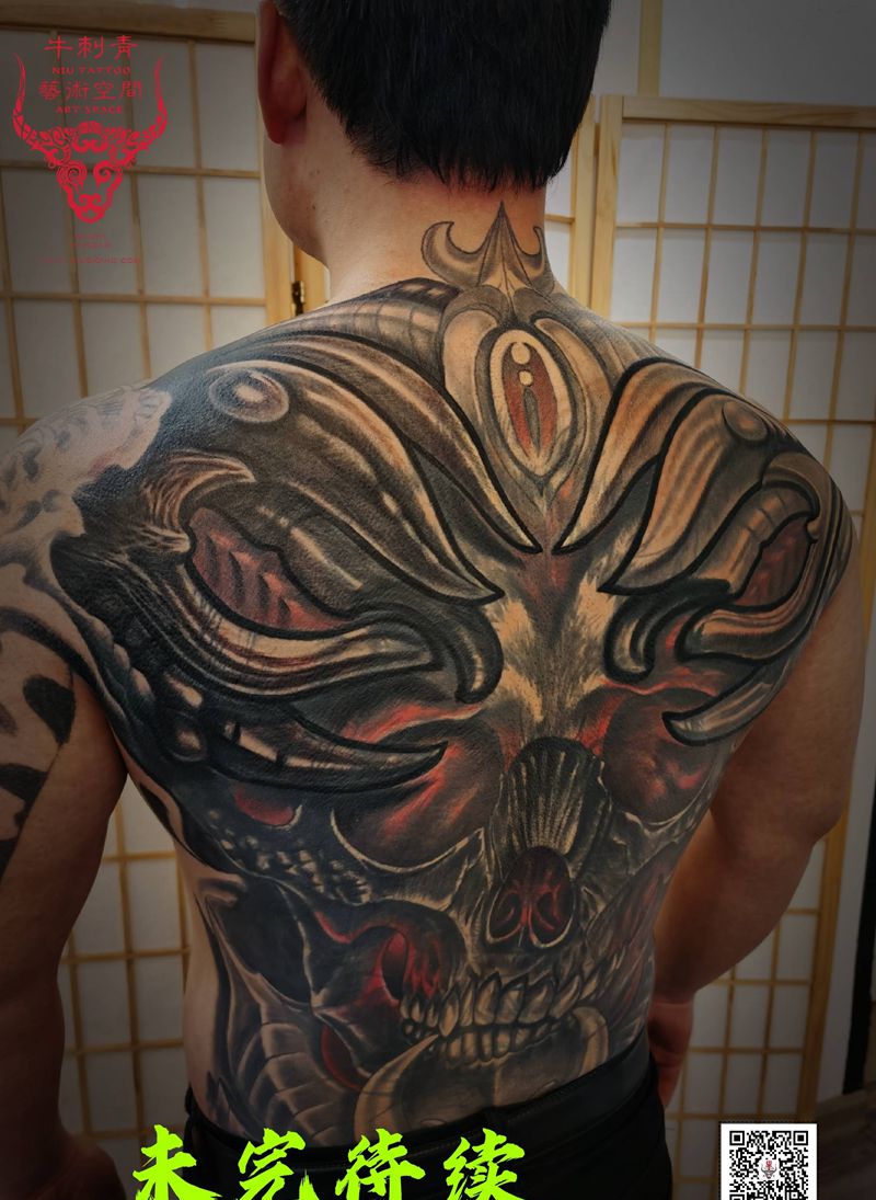 黑灰满背纹身图案