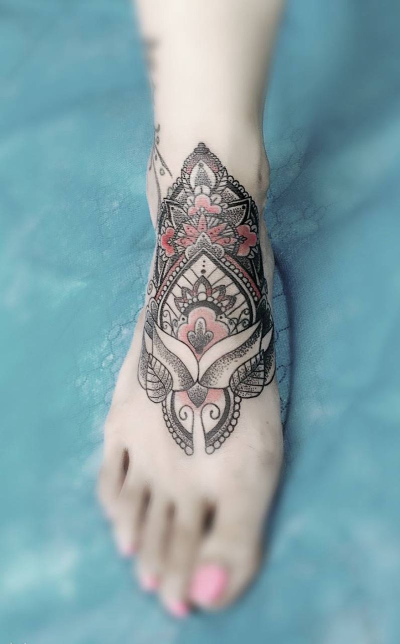 曼荼罗纹身图片_脚部传统几何图腾宗教成品纹身图案