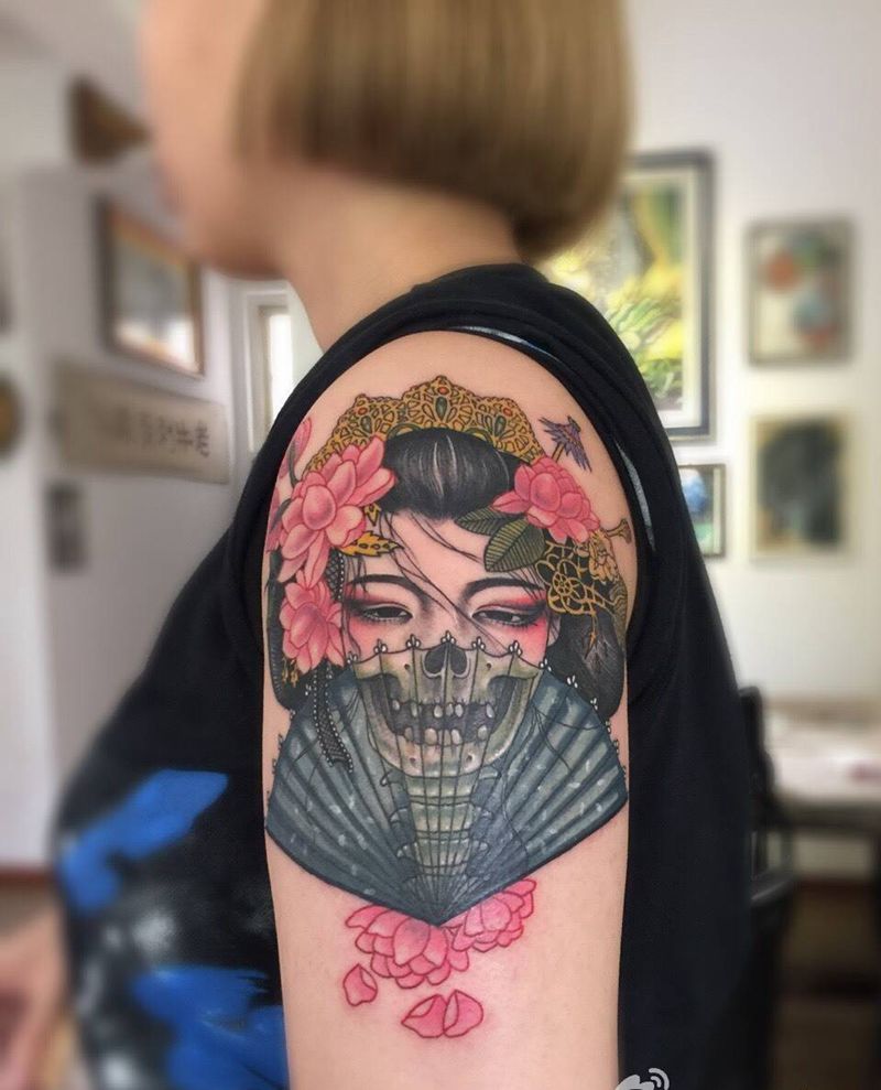 当前位置: 首页 >河北省邯郸市纹身店-邯郸牛刺青纹身图案>艺妓纹身图片_传统手臂人物纹身图案