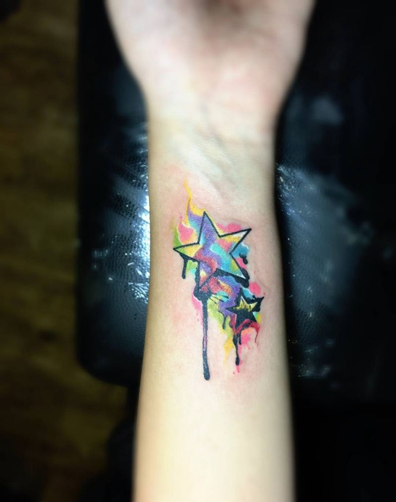 彩色星星纹身图片_手臂清新图腾字符原创手稿纹身图案