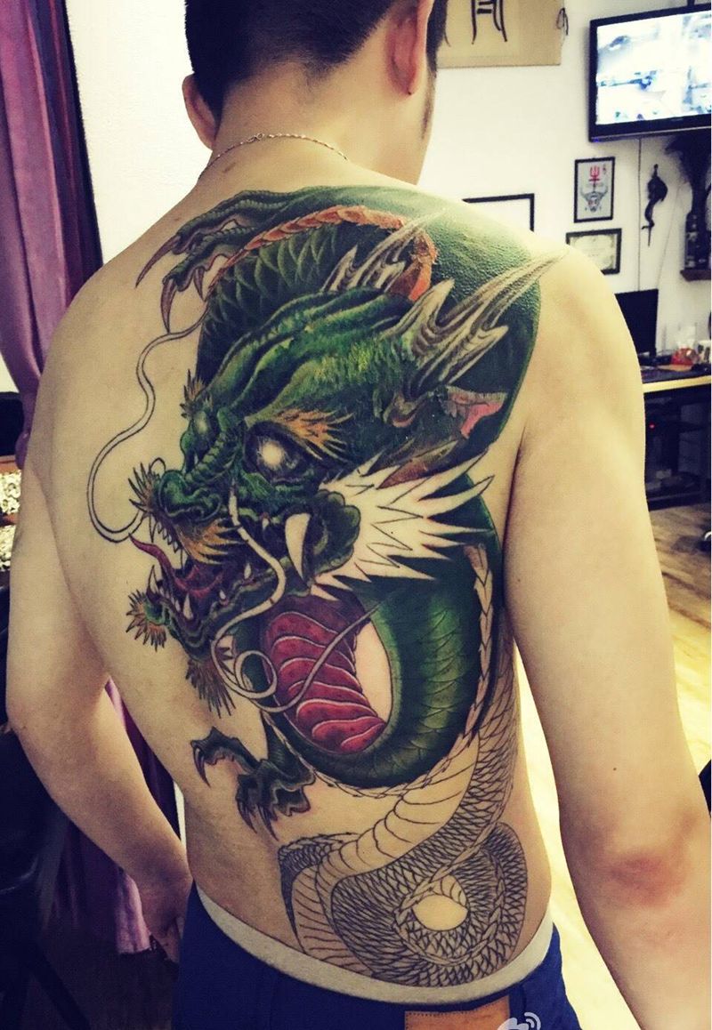 黑灰满背纹身图案