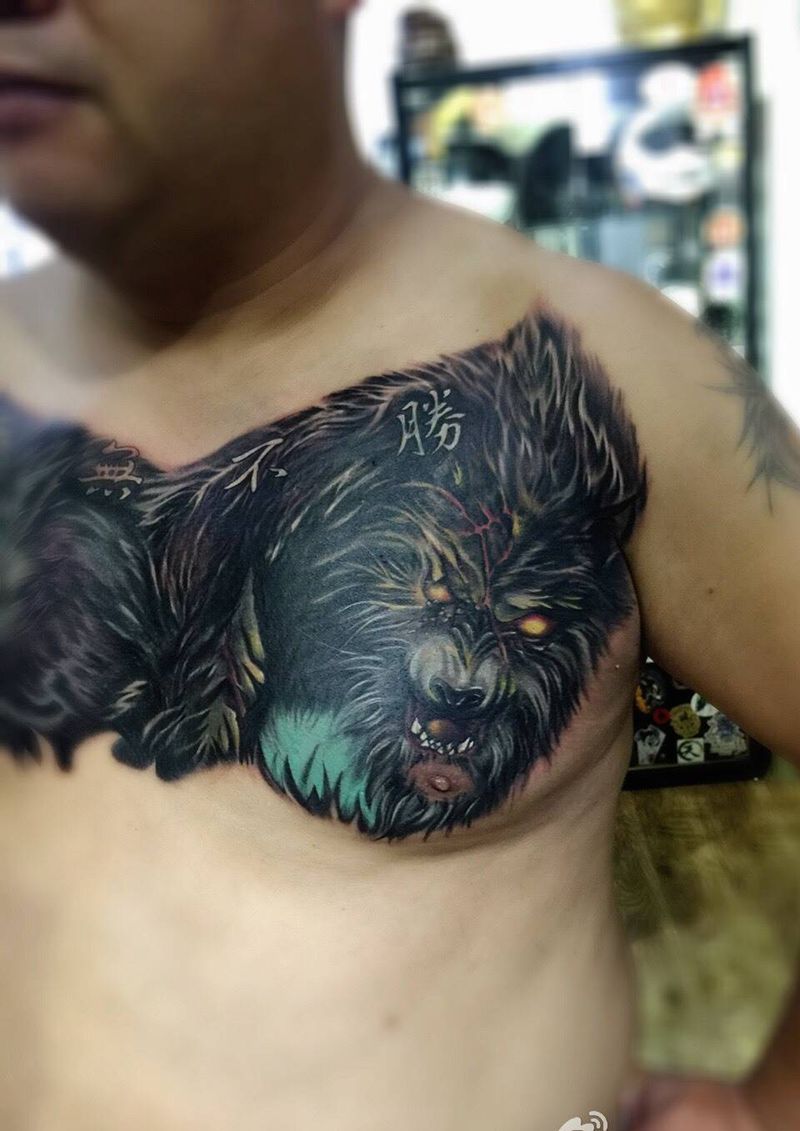 狼(遮盖失败文身¥纹身图片_欧美胸部动物纹身图案